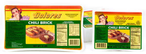With a nod to its shape, the aptly named Dolores Chili Brick has been enjoyed by chili lovers since its introduction in 1973. To this day, Dolores is famous for its beef and chicken brick-shaped chili.