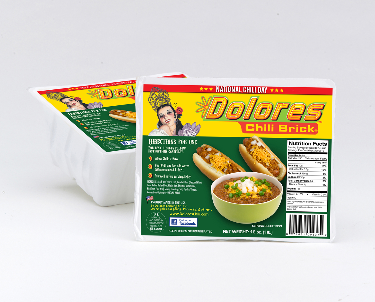Dolores Chili Brick has become a preferred chili by many nationwide. The 16-ounce brick-shaped frozen chili is sold in grocers and online. The chili has become widely popular because it is a tasteful and fun alternative to typical canned chili.